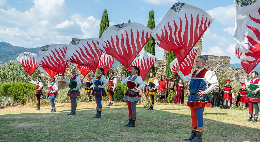 The Historical Group & Flag Wavers of Castiglion Fiorentino bring the art of flags, music, and medieval costumes to the world, celebrating the unique traditions of Castiglion Fiorentino, the heart of Tuscany.